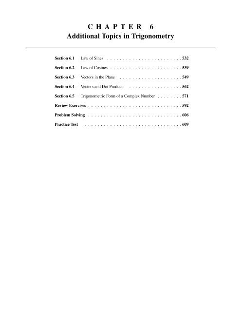 Chapter 6 Additional Topics in Trigonometry - all with Video Answers Educators WZ 1 more educators Section 1 Law of Sines 0010 Problem 1 An ________ triangle is a triangle that has. 66 Vectors 67 The Dot Product Chapter 6 Additional Topics in Trigonometry Lecture Note. 61 The Law of Sines 62 The Law of Cosines.