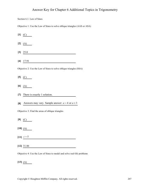 Answer Key For Chapter 6 Additional Topics In Trigonometry